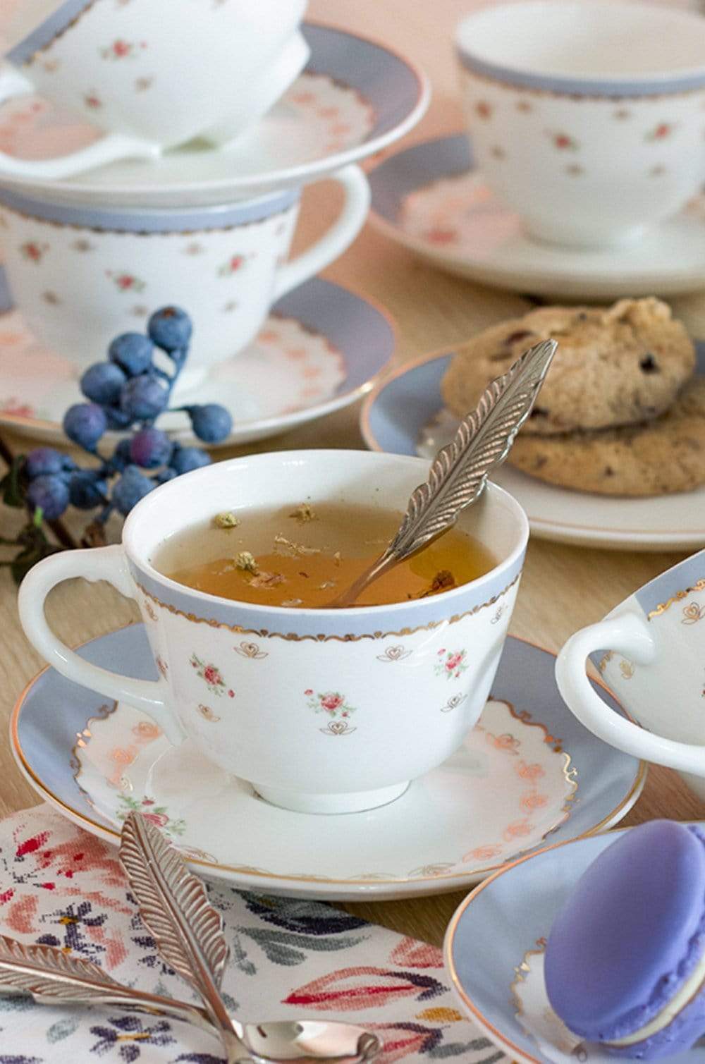 Vintage Rose Teacup & Saucer Set of 6 - Powder Blue