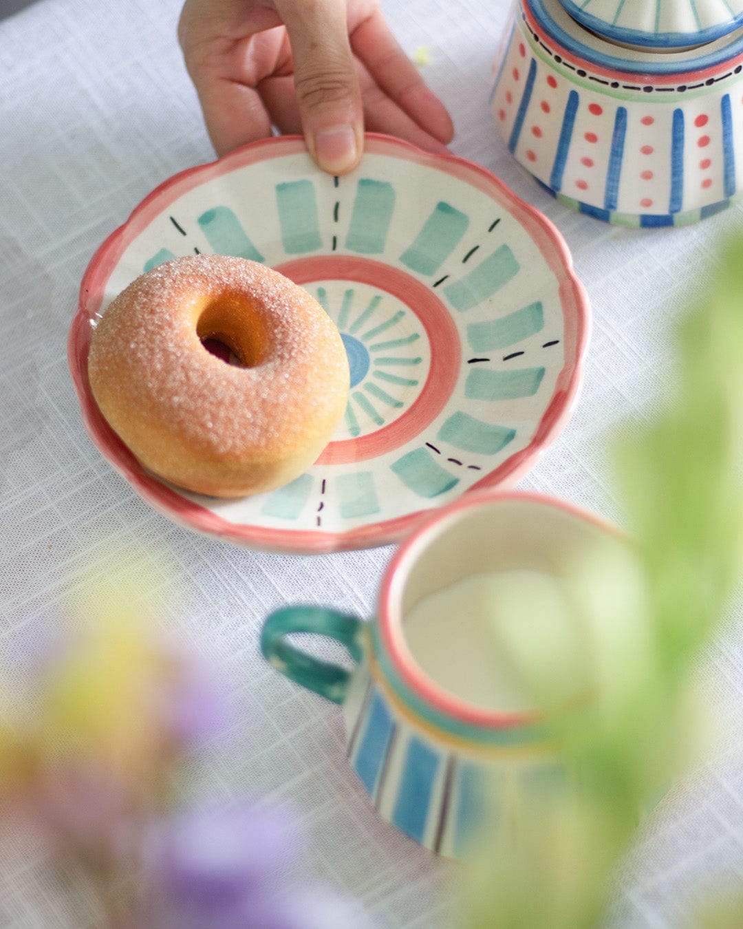 Zinnia Handpainted Ceramic Teacup & Saucer -Set of 4