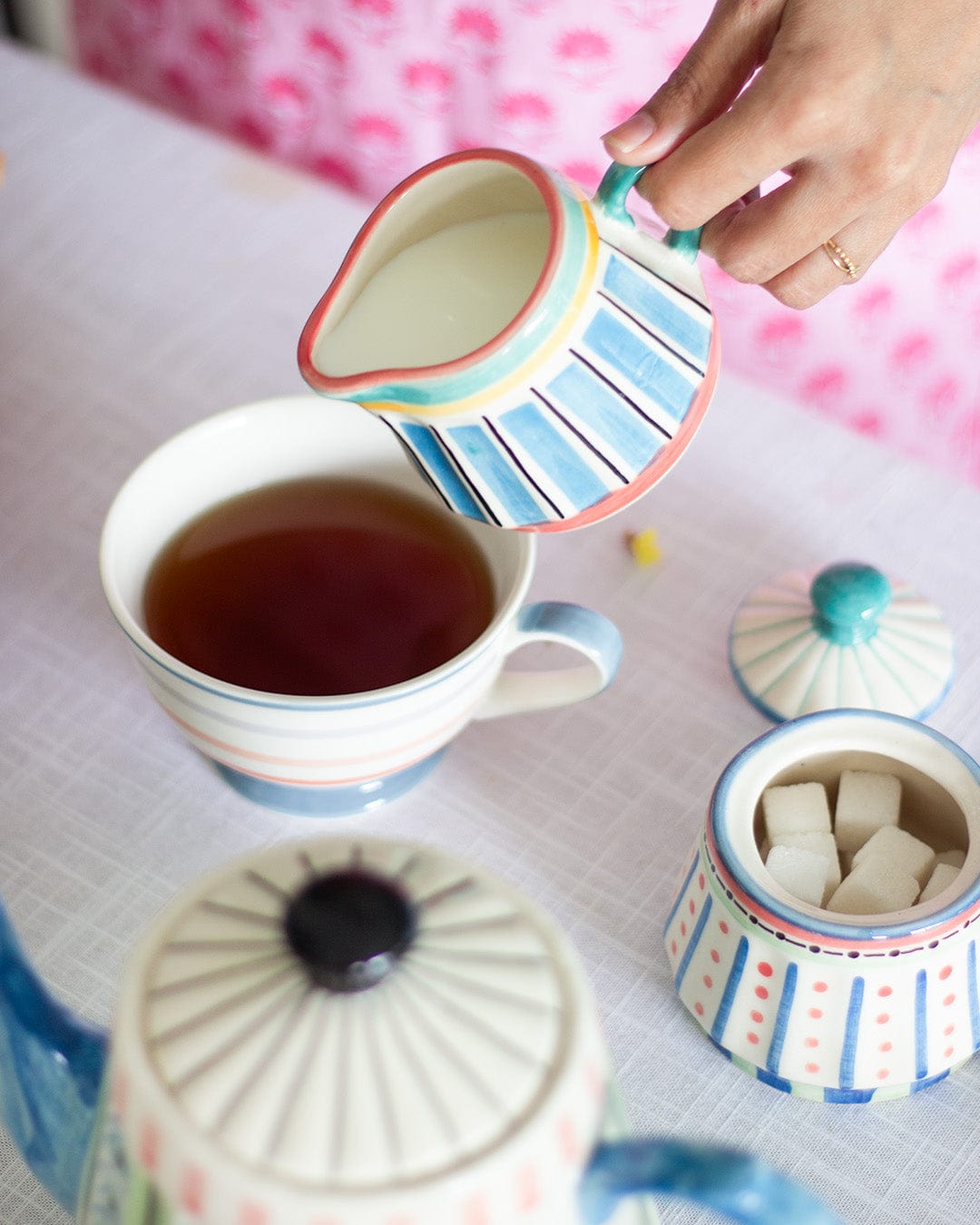 Arunya Hand painted Ceramic Teacup & Saucer -Set of 4