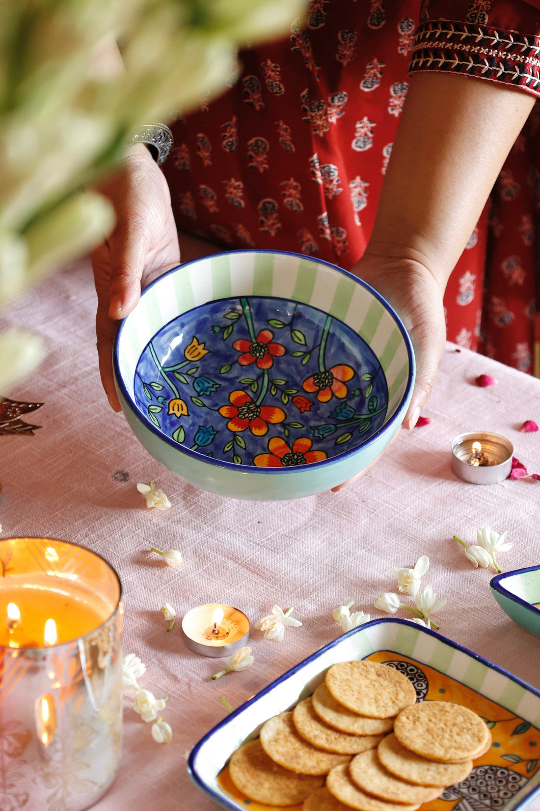 Tea Garden Handpainted Ceramic Bowl 15 cms