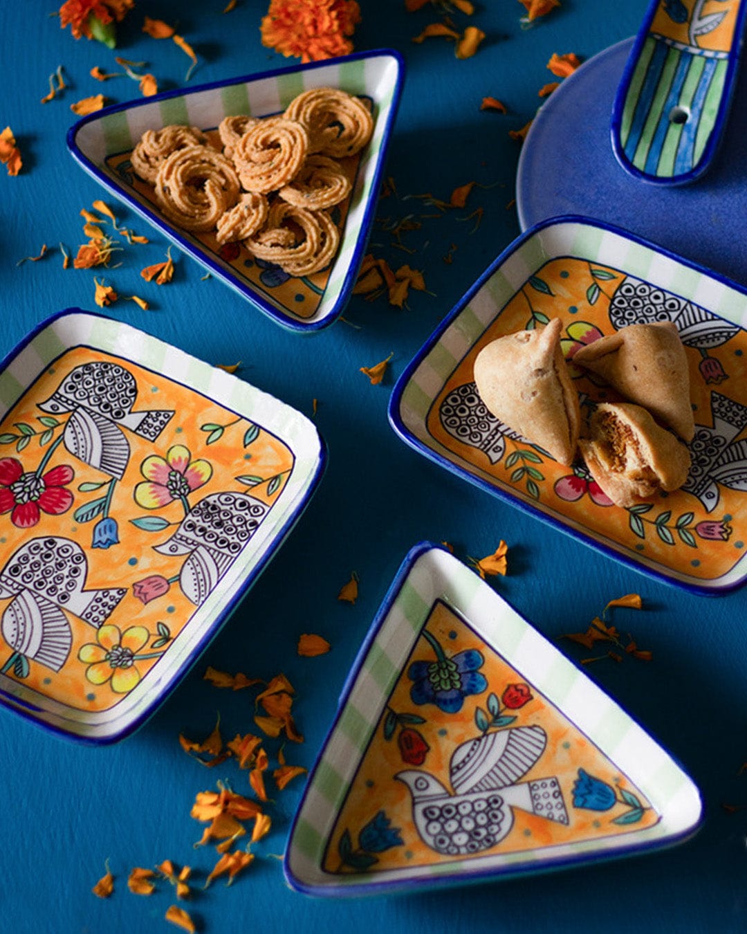 Perch Handpainted Ceramic Triangle Platter - Set of 2
