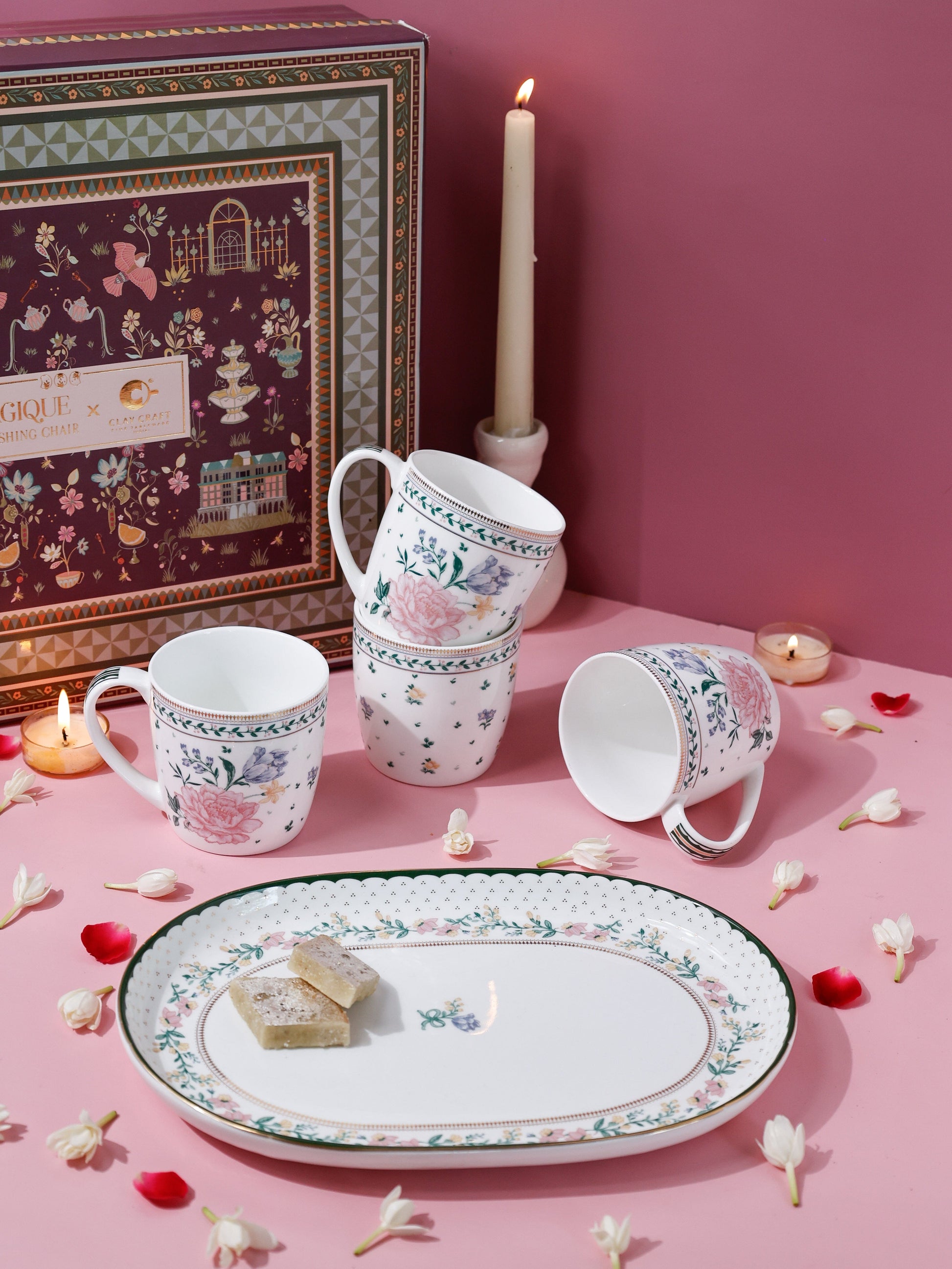 Magique by The Wishing Chair x ClayCraft : Emerald Ribbon - Celebrations Giftbox | Set of 4 Mugs & Platter