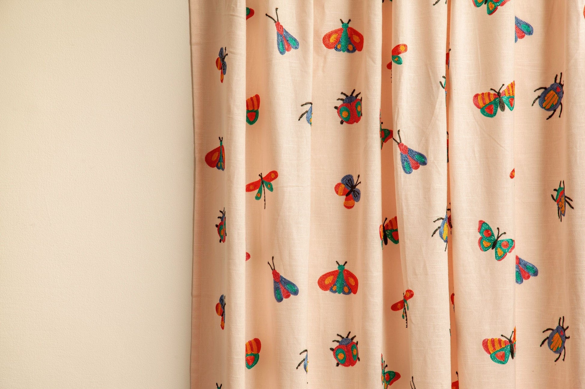 Why I'm a keeper Freshly baked caramel waffles in the lunchbox and a rouge sunrise. There¡¯s only one thing you¡¯re missing to perk up your mornings- this light blush pink curtain with an impression of origami butterflies, beetles and dragonflies. Who is this for? One for aspiring painters, bakers, botanists and you! "How to Use. Hang from the curtain rod or channel of an outward-facing window or inside your room to create a greater sense of space, separation and adventure. Our curtains feature a 3-in 1 hanging method- a fabric panel at the back allows for easy installation by running a curtain rod through or to clasp with curtain channel hooks. This product is handmade. There may be small imperfections or differences in shape, size, and colour which are inherent to the process and what makes it unique. Actual colours may vary slightly due to your screen's resolution and settings.