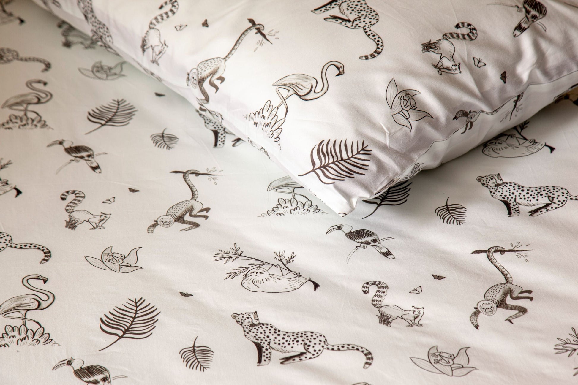 Why I'm a Keeper A jungle is like a book, full of discovery. That¡¯s why this bedsheet with its many different jungle characters inspires the habit of reading. Jump right onto it and explore a brave world! Who is this for? One for aspiring travel writers, zoologists, photographers and you! "How to Use The Jungle Stories bedsheet comes in two styles for you to choose from, a flat sheet or a fitted sheet. The sheet is meant to keep the mattress clean and make your bed look snug and inviting. Simply spread the sheet out and tuck on all sides. The fitted sheet comes with an additional elastic clasp for ease in tucking. You can also take the flat sheet out into the garden and use it as a spread for a picnic. This product is handmade. There may be small imperfections or differences in shape, size, and colour which are inherent to the process and what makes it unique. Actual colours may vary slightly due to your screen's resolution and settings."